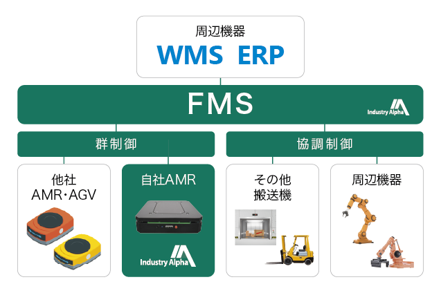 AMRを群制御すると同時に周辺機器を連携する自動化プラットフォームです。