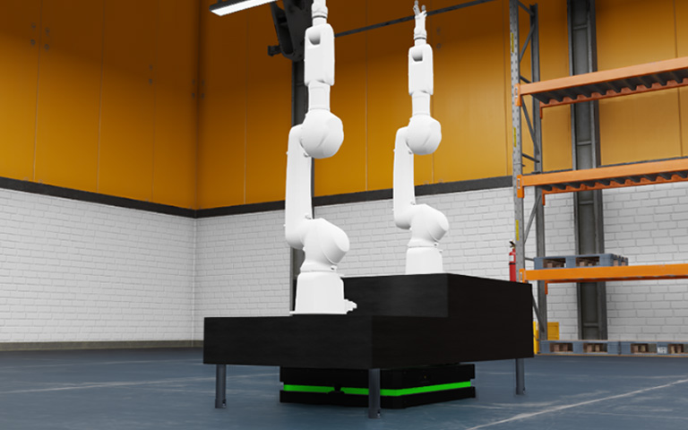AMRにロボットアームを組み合わせることで、搬送とピックアップ・設置作業を自動化するソリューションです。パーツ供給、仕分け、積み付けなど、人手を介していた工程の無人化を可能にします。
